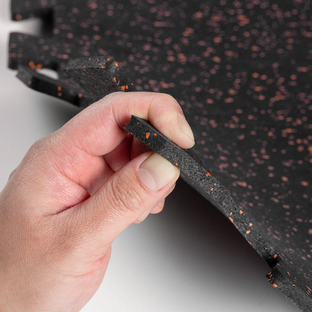 – 20% Speckle pattern- 7mm Thickness- Extremely Low Odour Rubber- Size: 24″ x 24″- Easy to trim edges- End pieces for straight edges are not available Caution: We advise buying an extra 5-10% of tiles beyond your calculated needs. Be aware that if you require more tiles in the future, they may not originate from the same production batch, leading to possible discrepancies in colour or speckle design. We can’t ensure an exact match for tiles ordered at a later time.